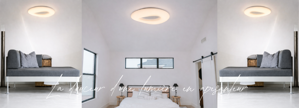 En version plafonnier, CLOUD devient une présence lumineuse évidente, idéale pour les chambres, salons ou espaces de circulation, où la lumière doit se faire sentir sans jamais s’imposer.