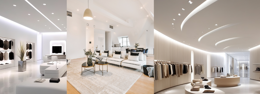 Pensés pour s’intégrer harmonieusement aux plafonds et parois, ils permettent de structurer les volumes, de valoriser les matières et de maîtriser la lumière avec précision, tout en répondant aux exigences techniques et réglementaires actuelles.