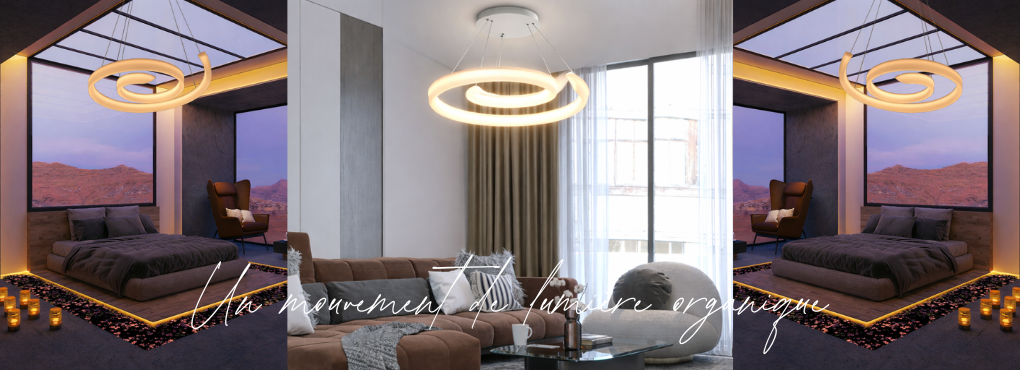 SPIRAL est une suspension sculpturale qui dessine la lumière dans l’espace par un mouvement continu et fluide. Sa forme enroulée évoque une ligne naturelle, presque minérale, suspendue avec légèreté, comme portée par l’air.