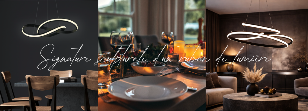 Ses lignes circulaires semblent flotter dans l’espace, formant un mouvement lumineux continu idéal pour structurer visuellement un espace contemporain, tout en conservant une sensation de légèreté.
