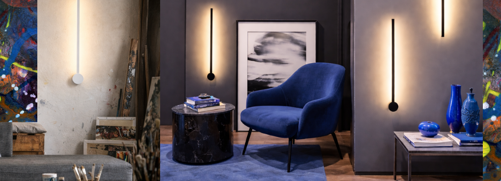 Épurées et architecturales, ces appliques murales se distinguent par leur dessin vertical minimaliste.