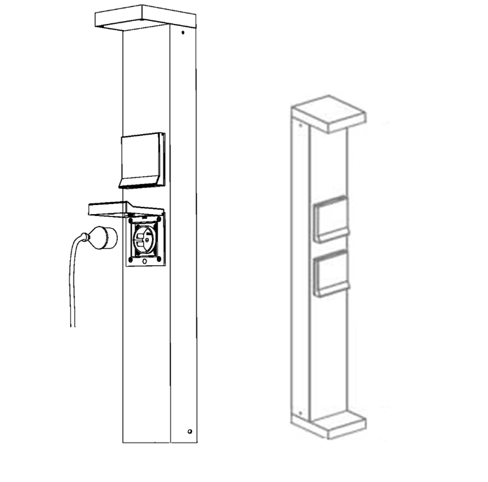 Cette borne multifonction associe éclairage extérieur architectural et alimentations électriques, pour répondre aux usages contemporains des espaces extérieurs.