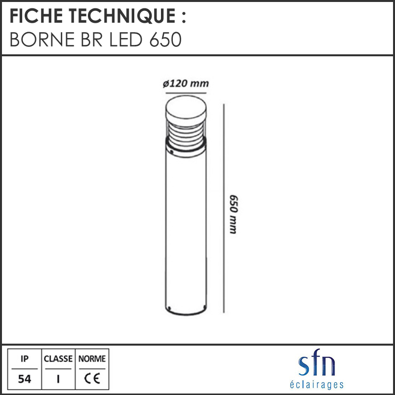 ELE-39000207 | BORNE BR LED 650/15W BLANC | 15 | 3000 | 368 | 120 | 650 |