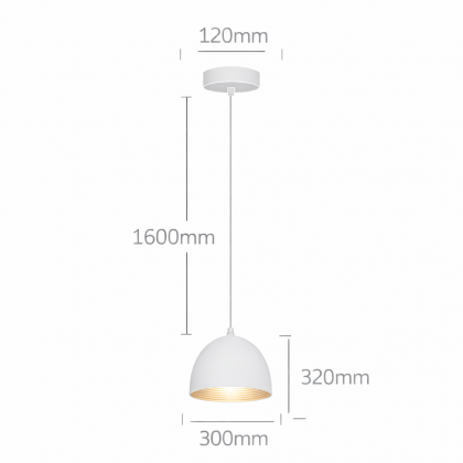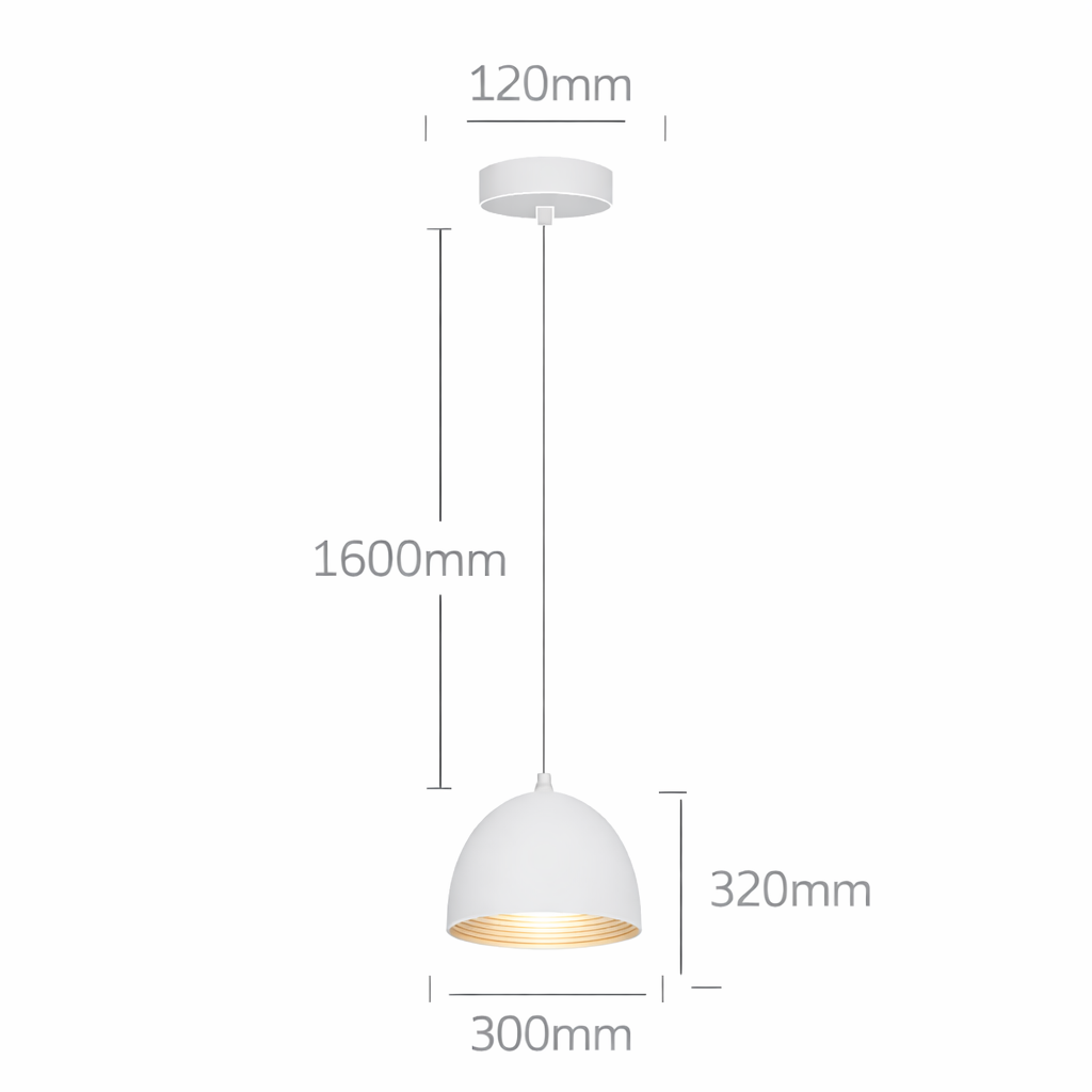 ELI-63016002 | BOWL 300 BLANC E27 Réflecteur gris | E27 | 300 | 400 + 2000mm de câble |