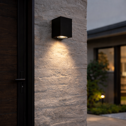 Idéale en éclairage d’entrée, en ponctuation de façade ou en mise en valeur de murs extérieurs, elle conjugue minimalisme architectural et justesse lumineuse.