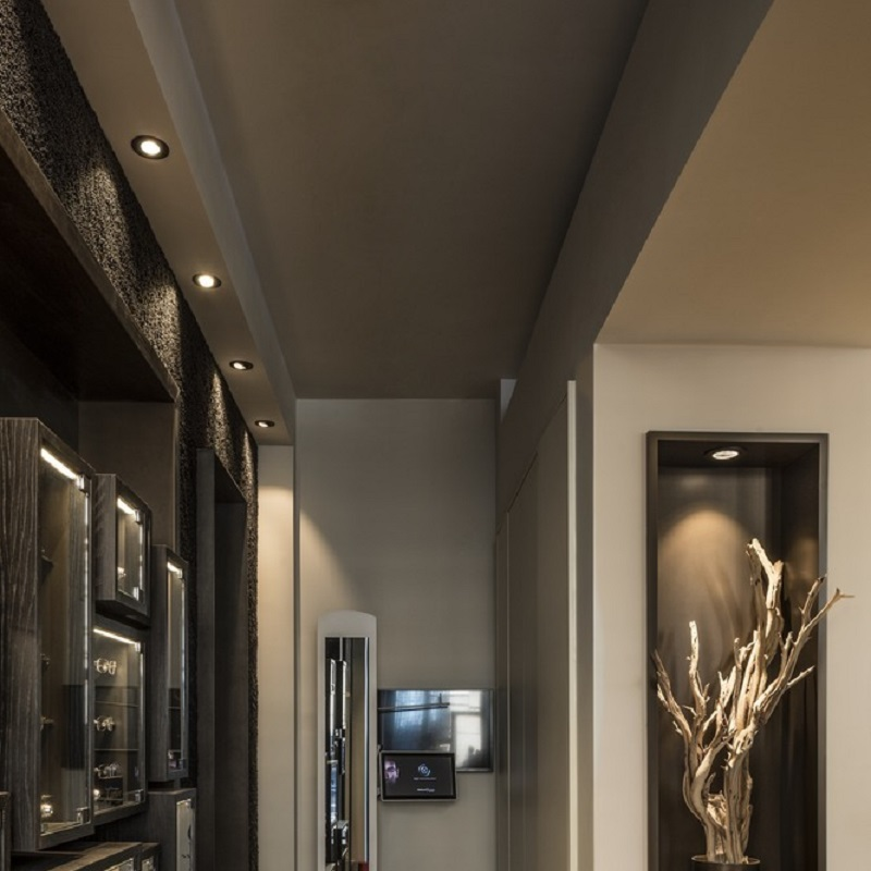 | Code | Désignation | Puissance Watts (W) | T° couleur Kelvin (K) | Flux lumineux Lumens (lm) | Encastrement Ø (mm) | Hauteur (mm) | Recouvrement Ø (mm) | |