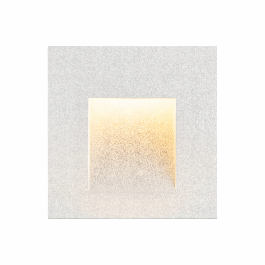 Encastré mural rond IP44MURALED CARRÉ est équipé d’un module LED de 3W, diffusant un flux lumineux de 100 lm avec un faisceau large de 70°.