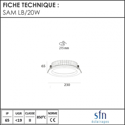 ELI-18204002 | SAM LB/20W BLANC 4K | 20 | 90 | Non | Non | 4000 | 1785 | 215 | 65 | 230 |
