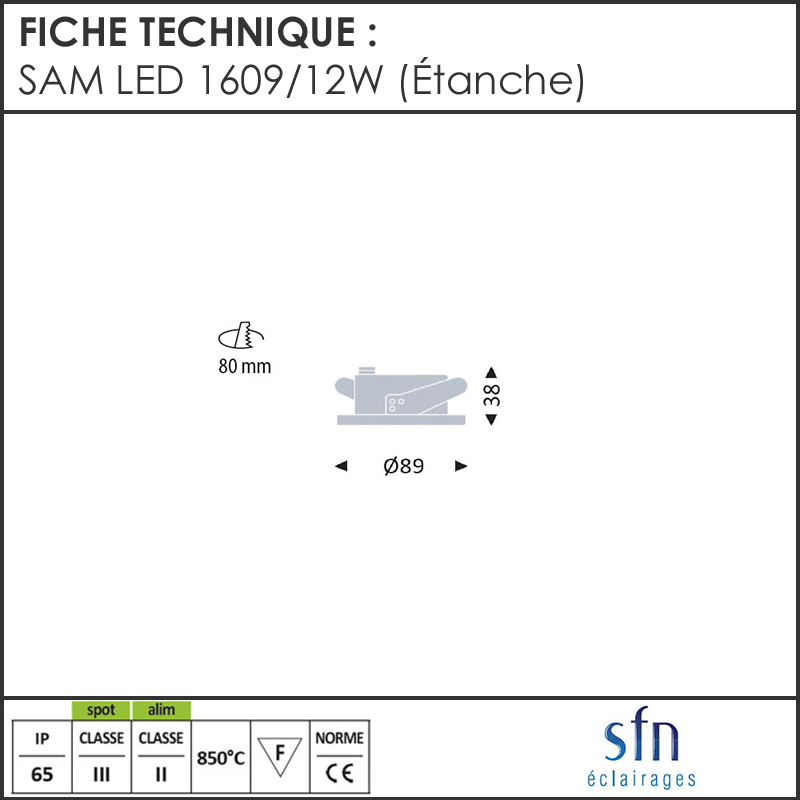 ELI-05160901 | SAM LED 1609/12W ÉTANCHE CHROMÉ 3K | 12 | Non | 3000 | 779 | 80 | 38 | 89 |