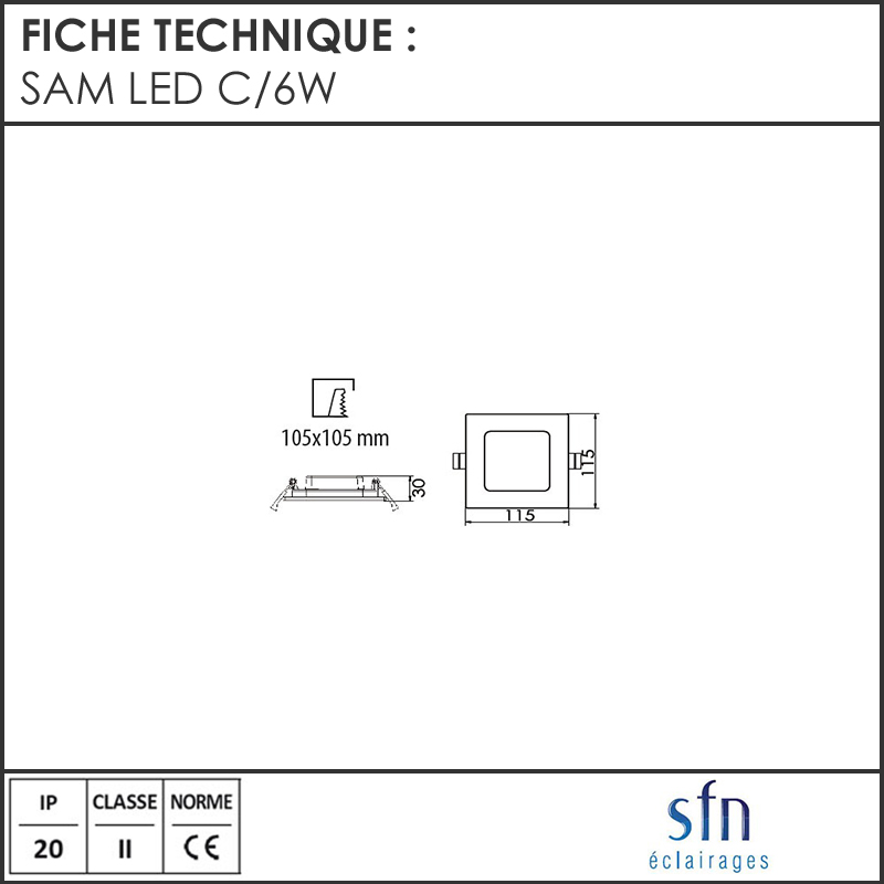 ELI-25105140 | SAM LED C DIM/6W BLANC 4K | 6 | Non | 4000 | 390 | 105x105 | 30 | 115x115 |