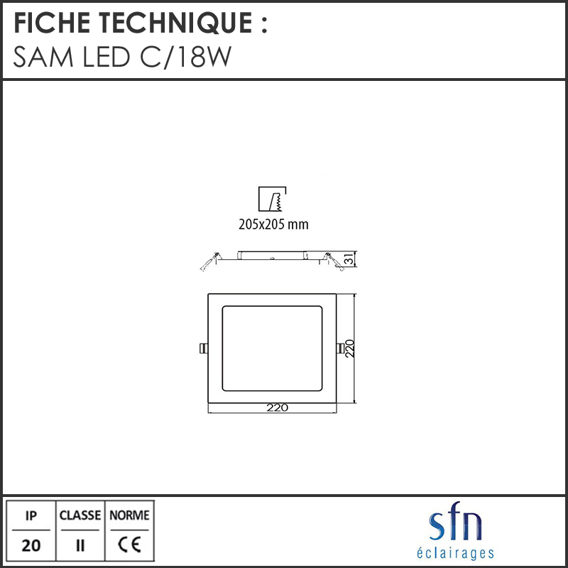 ELI-25205130 | SAM LED C DIM/18W BLANC 3K | 18 | Non | 3000 | 1350 | 205x205 | 31 | 220x220 |