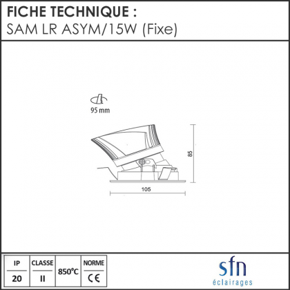 ELI-21000332 | SAM LR ASYM/15W BLANC 3K | 15 | 38 | Non | 3000 | 1210 | 95 | 85 | 105 |