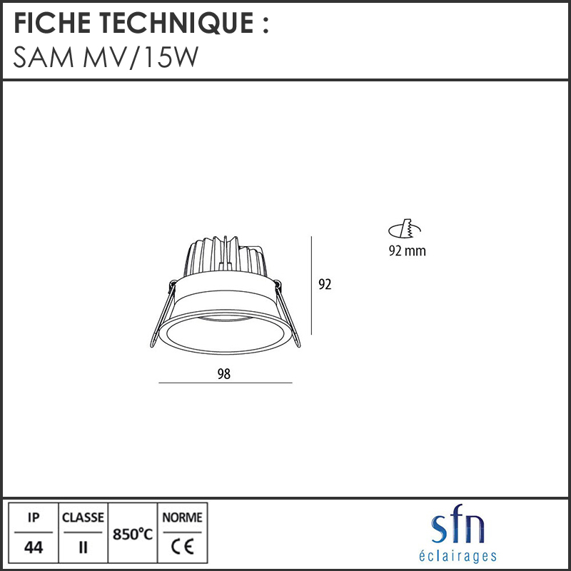 ELI-18211532 | SAM MV/15W BLANC 3K | 15 | 45 | Non | 3000 | 1025 | 92 | 92 | 98 |