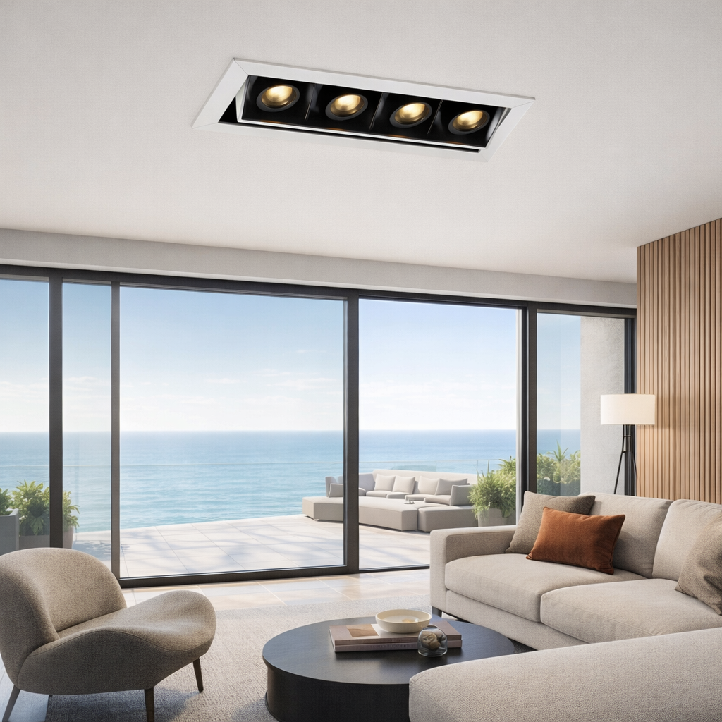 | Code | Désignation | Puissance Watts (W) | Orientable | T° couleur Kelvin (K) | Flux lumineux Lumens (lm) | Encastrement Ø (mm) | Hauteur (mm) | Recouvrement Ø (mm) | |