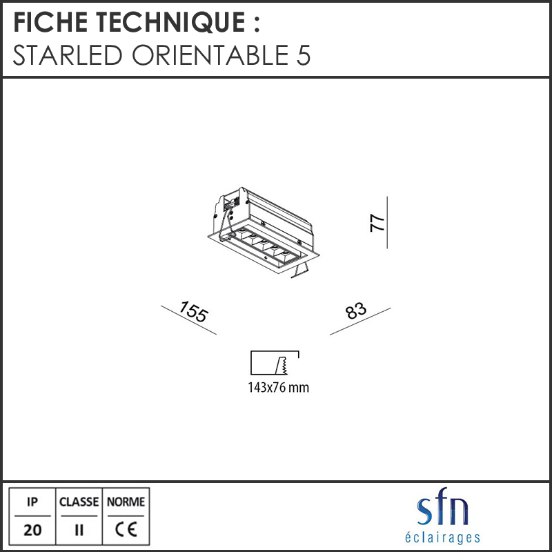 ELI-05288302 | STARLED ORIENTABLE 5x2W 3K BLANC | 10 | Oui | 3000 | 1120 | 143x76 | 77 | 155x83 |