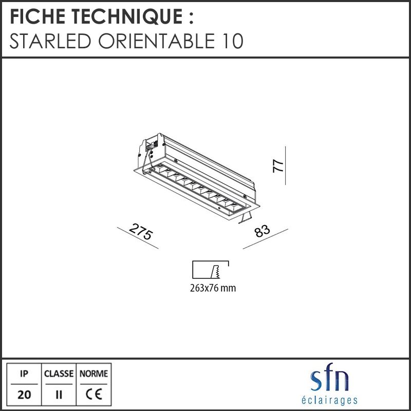 ELI-05283102 | STARLED ORIENTABLE 10x2W 3K BLANC | 20 | Oui | 3000 | 2240 | 263x76 | 77 | 275x83 |