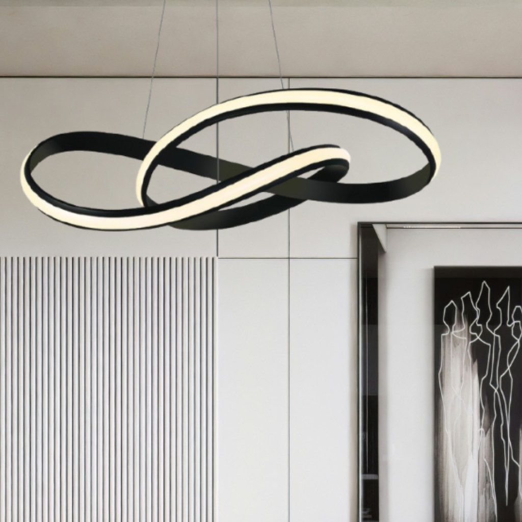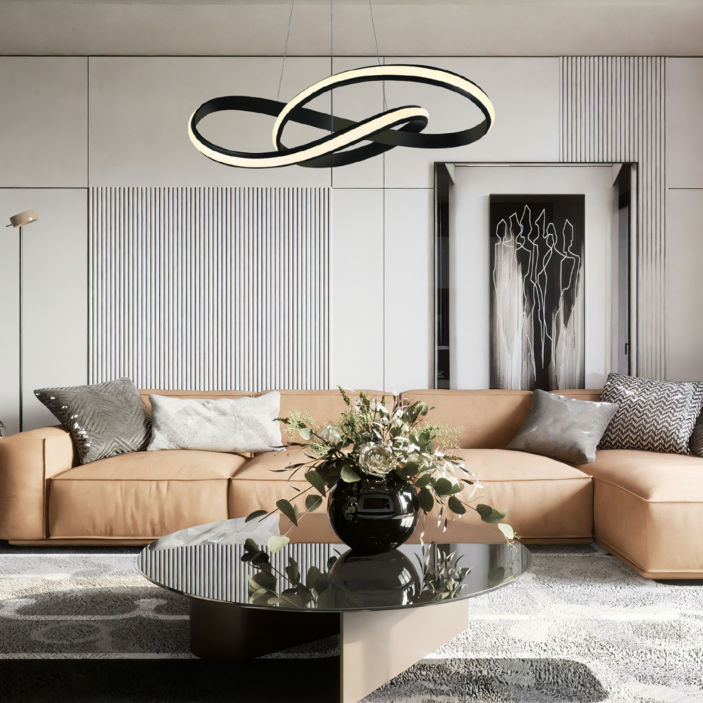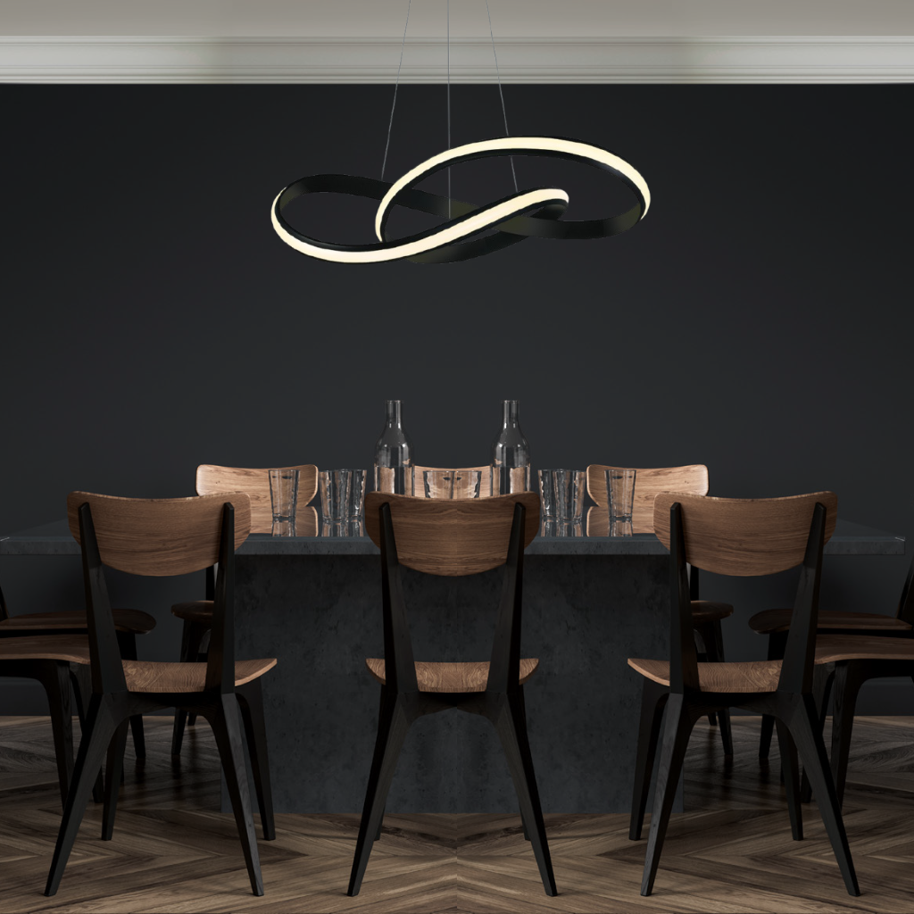 Il structure visuellement les espaces tout en conservant une sensation de légèreté, idéalement dans un salon, une entrée, au dessus d’une table de repas ou au sein d’un espace lounge ou de réception.