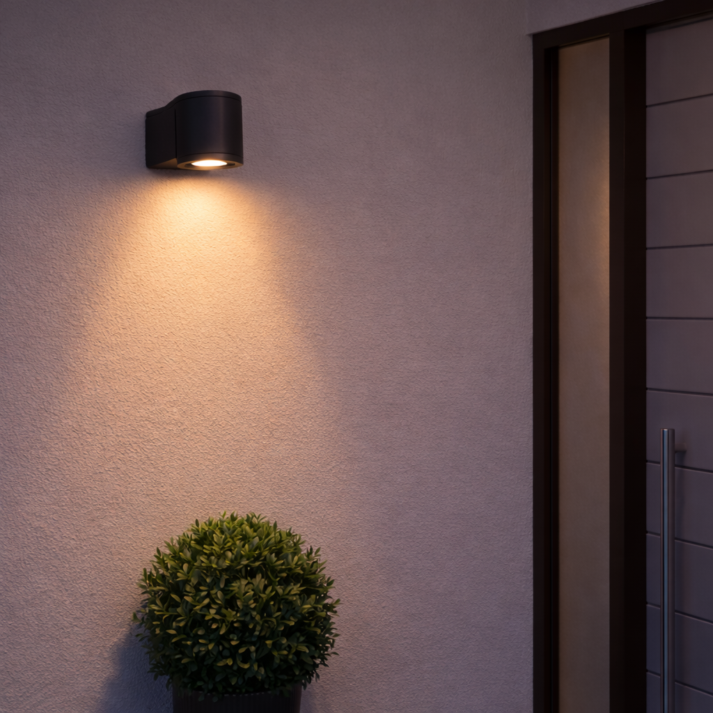 Son design cylindrique aux lignes épurées apporte une signature contemporaine discrète et élégante. La forme ronde adoucit l’architecture tout en conservant une présence graphique affirmée, idéale pour rythmer un mur ou encadrer une entrée.